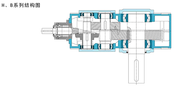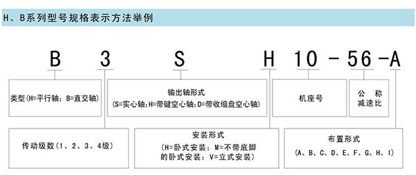 2、H、B系列工業(yè)齒輪箱采用通用設(shè)計(jì)方案,實(shí)現(xiàn)平行軸、直交軸通用箱體,零部件種類減少,規(guī)格型號(hào)增加。